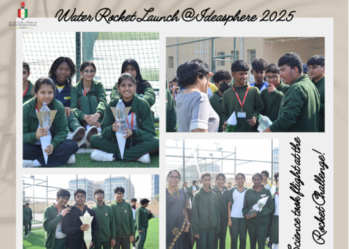 Students of Grades 9 & 10 demonstrated remarkable ingenuity as they designed and launched rockets built entirely from best-out-of-waste materials, showcasing the perfect blend of creativity, sustainability, and engineering skill. Inspired by the UAE Climate Positive Kids Programme modules, learners ensured that each rocket was made from waste materials and powered solely by water and air pressure, mirroring real-world STEM challenges.